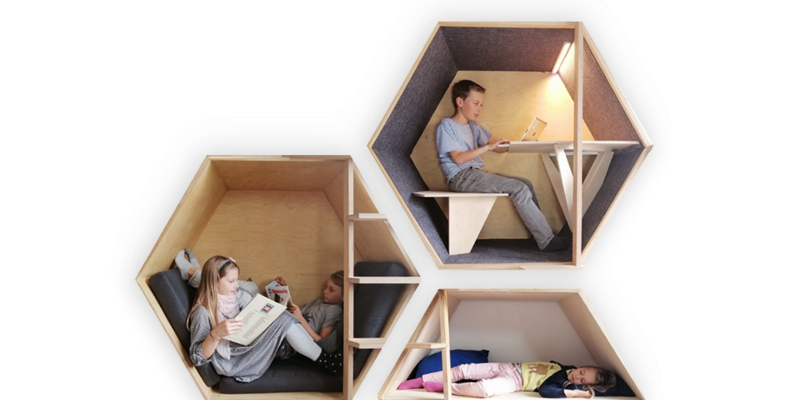 Flip Honeycombs are sturdy wooden structures designed to make efficient use of space. Suitable for compact areas and cost-sensitive projects, they can be self-assembled and arranged in various configurations. The interior can be customised with different colours, making them suitable for a range of settings.